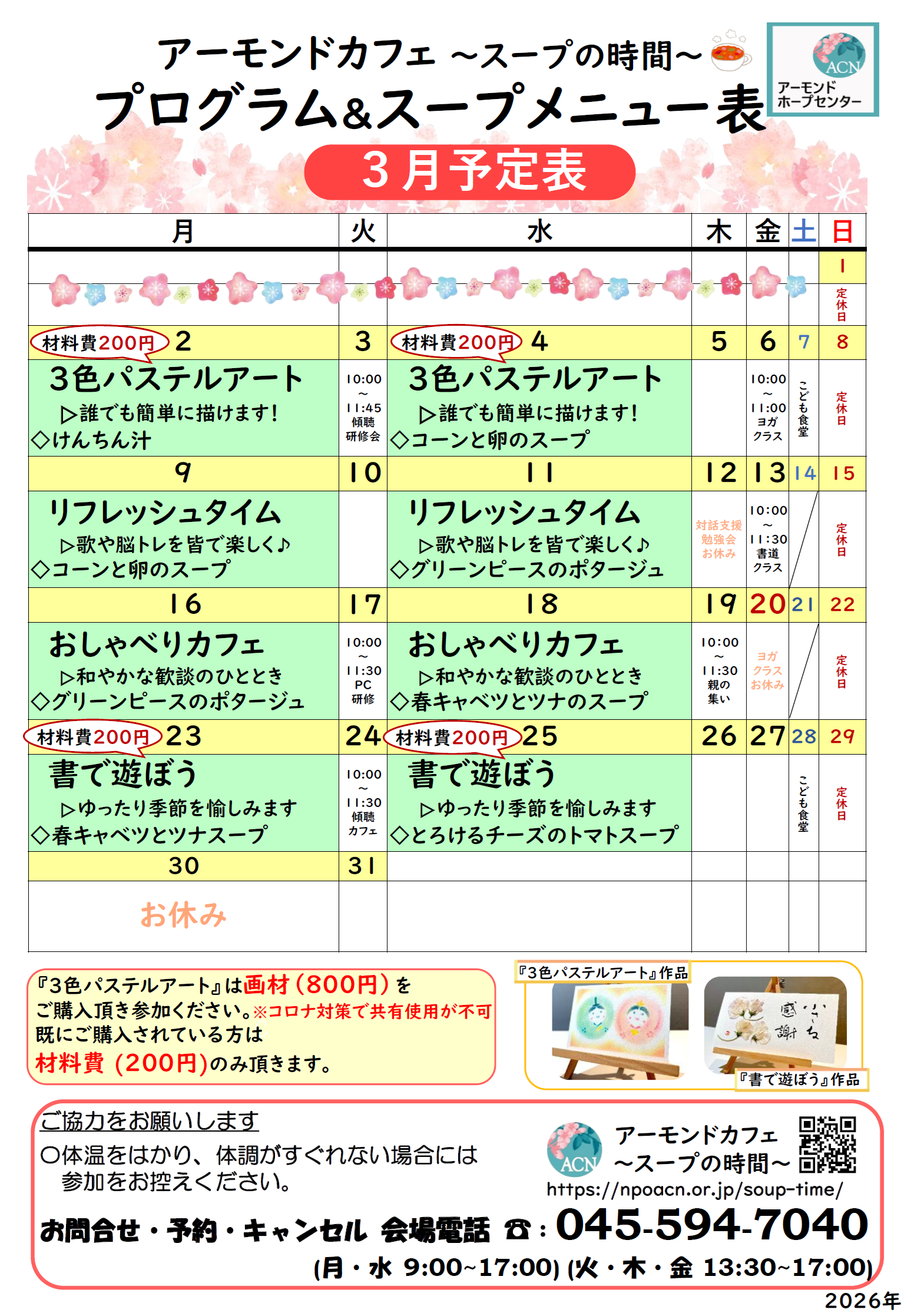 アーモンド・カフェ~スープの時間~ 投稿日: 2025年11月27日2025年11月27日 投稿者: acn 横浜市営地下鉄グリーンライン北山田駅より徒歩1分のアーモンドホープセンター(エキニワ北山田 2A)で開催しています。 アーモンド・カフェ 〜スープの時間〜の詳細はこちら