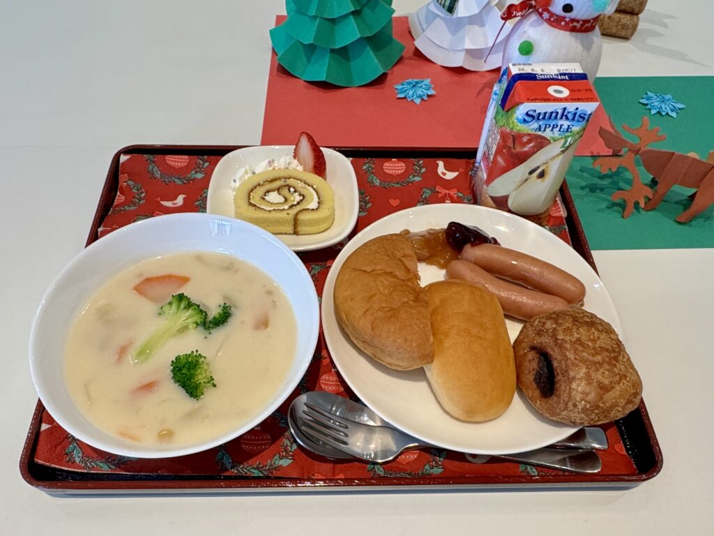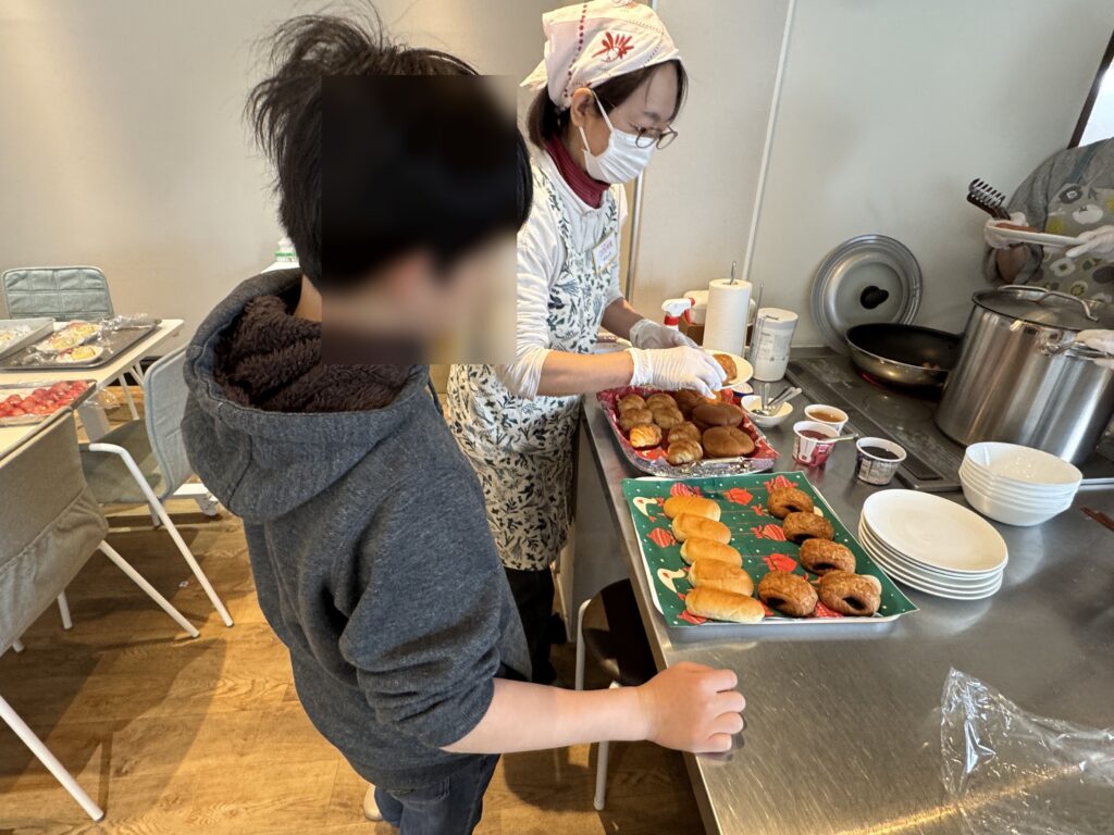 今日は、好きなパンを選んでいただきます。 「どのパンにする?」というスタッフの声かけに、 「これとこれと…」と、迷いながらも嬉しそうに選んでいます